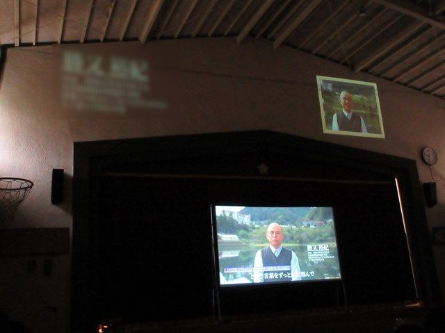 町長さんのご祝辞とヒストリームービー(株式会社ミナミ様)の上映